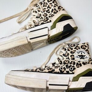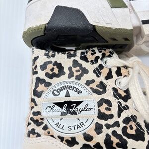 Converse ladies Animal Print. Print Canvas Hi-top. Size 6.5 Worn one full day on a commercial. New and worn outside. Can def use a washing. Only dirt stains. Open to offers .. Cheetah Pattern tans, blacks, golds and whites