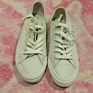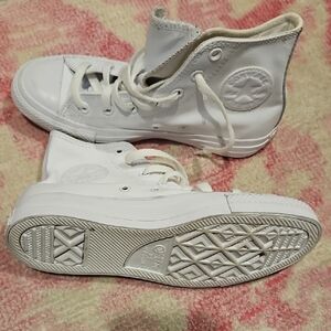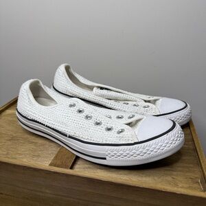 Shipped from a smoke and pet free home in great condition Elevate your active lifestyle with these Converse Chuck Taylor All Star sneakers in a special edition transparent design. Perfect for women who love to stay in shape, these athletic shoes are a must-have for your shoe collection. With a US shoe size of 9, these sneakers are made to fit comfortably and provide the support you need. The exterior color of these sneakers is a pristine white, making them perfect for any workout outfit. These Converse sneakers are not only functional but also stylish, making them perfect for both indoor and outdoor activities. Get ready to take on any workout challenge with these transparent Chuck Taylor All Star sneakers from Converse.