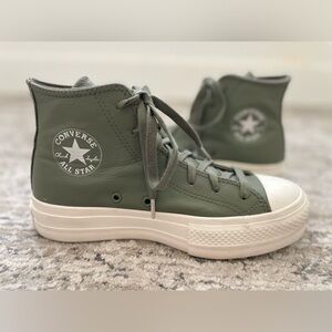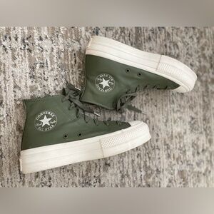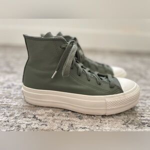 Converse High Top Green Leather Lift Platform Hi Womens size 7