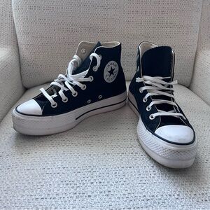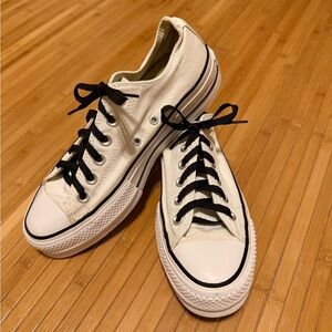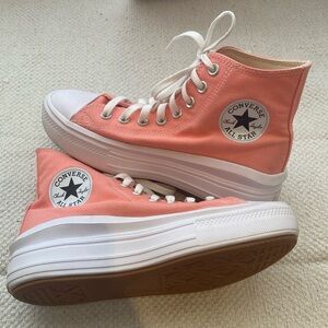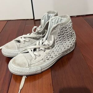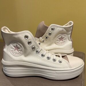 Chic Converse high-tops. Beige canvas with white accents. Ideal for everyday style. New with tags.