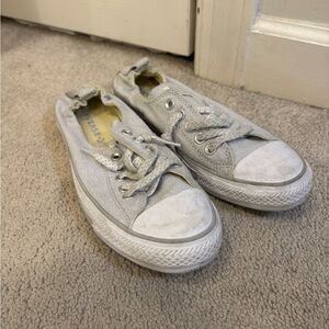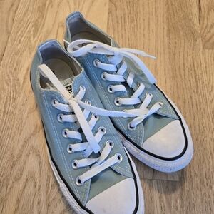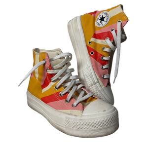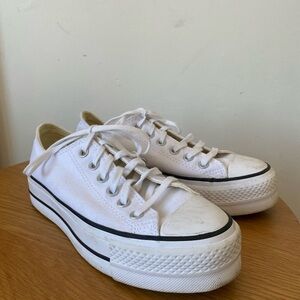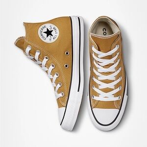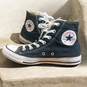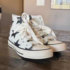 Classic Converse high-top sneakers. Cream canvas with iconic logo. Lace-up design. Women’s 11 men’s 9