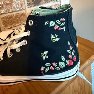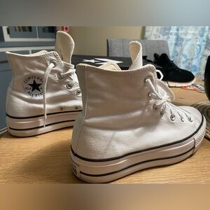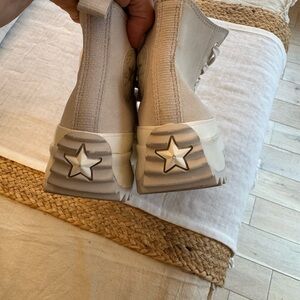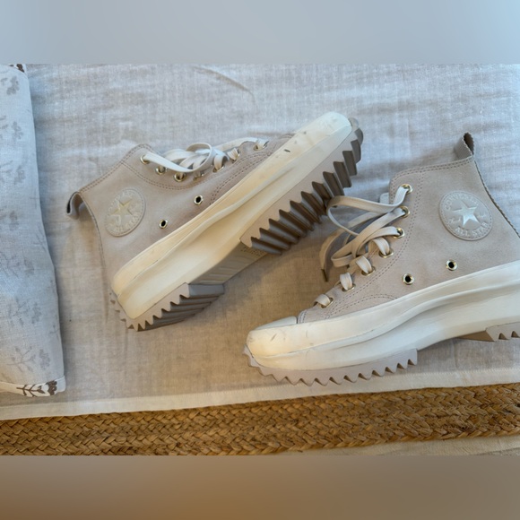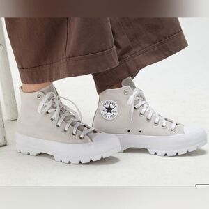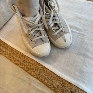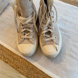 Chic Converse high-tops with ridged soles. Light beige color. Ideal for everyday style.