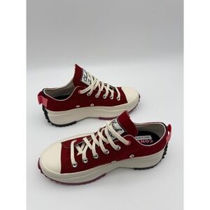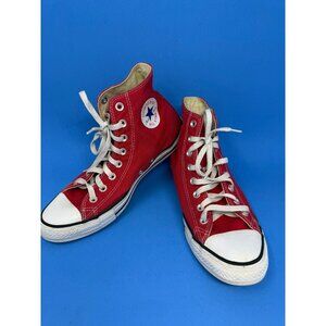 Converse high-tops featuring a striking graphic design. Black, red, and white colors create a bold style.