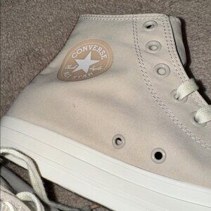 Brand new! Never worn. Chic Converse high-tops with a taupe body and mustard toe cap. Ideal for everyday style.