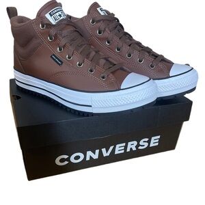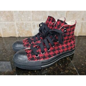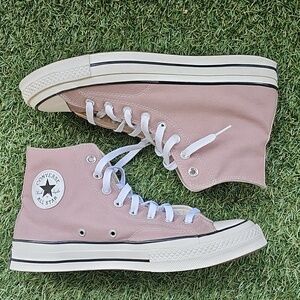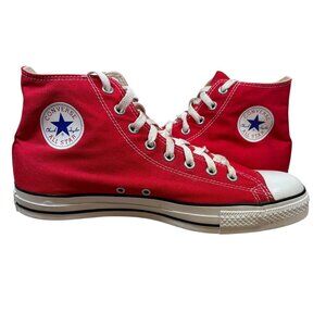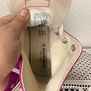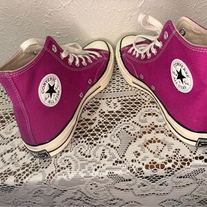 Bold fuchsia Converse high-tops. Classic white laces and sole. Ideal for everyday style.