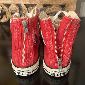 Converse Red Canvas High-Tops zippered back sewn on patch red bottom