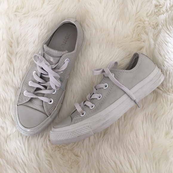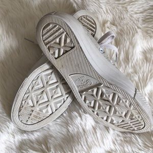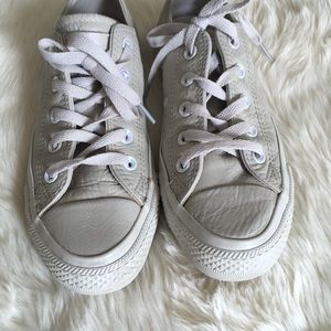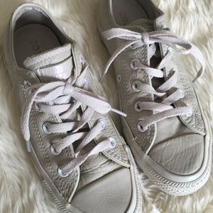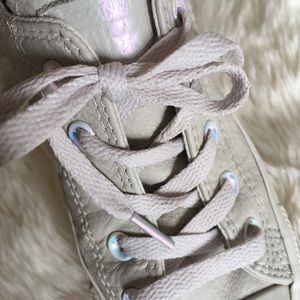 Converse Ivory Leather Holographic Sneakers. Hologram stripe on heel, lace tips and grommets.