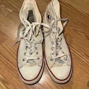 These are a woman’s size 8. They are preowned but still in nice condition. Please see the photos. These have been cleaned and washed.