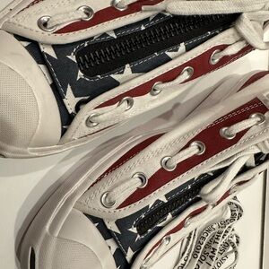 Size 13 Converse Jack Purcell The soloist red white and blue American Flag shoes. Never worn. No box. See photos. Please email me with any questions.