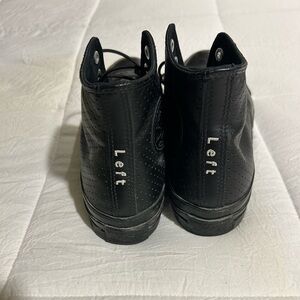 Converse black leather high tops mens size 9 women’s size 11. John Varvatoes part of a limited release custom modification within the collaboration line.