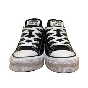 Lightweight black canvas sneakers with white laces and durable rubber soles. Featuring classic Converse All Star design with a timeless low-top silhouette. Made in Vietnam.