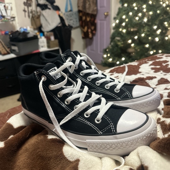Classic black canvas sneakers with white accents. Comfortable and stylish for everyday wear.