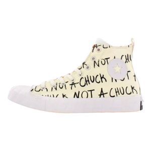 Repeated “Not a Chuck” text and Converse license plate on the heel add a cool look and bring in some brand rep.