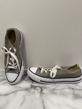 Classic Converse sneakers for kids. Cream canvas with red accents. Ideal for casual outings.