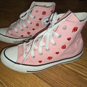 Converse Kids High-Top Sneakers | Size 5 | Pink w/ Red Heart & Rose Embroidery