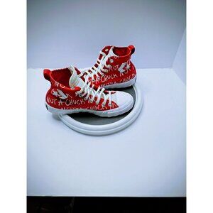 Converse Kids Red & White High Top Sneakers "Not A Chuck" Text Design Size 7