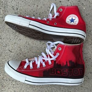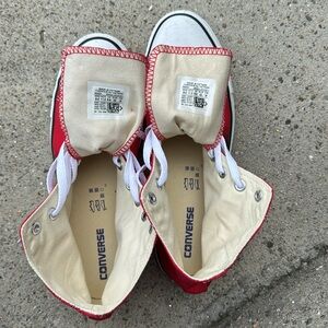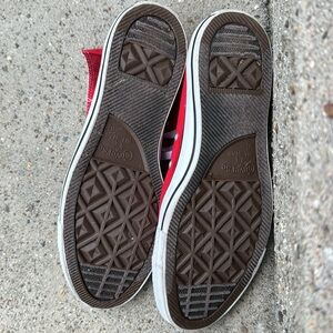 Vibrant red Converse sneakers for kids. Classic white laces and toe cap. Perfect for active play.