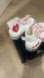 Charming white sneakers with red heart details. Features 'LOVE' printed laces. Ideal for playful outings.