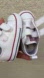 Classic Converse sneakers for kids. White with red trim. Easy velcro straps.