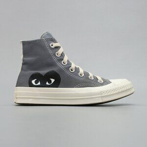 Converse Ladies 6 Comme Des Garcons CDG PLAY Hi-top Steel Grey Black Heart Shoes