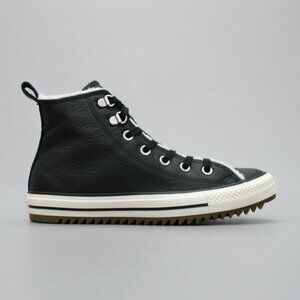 A pair of women's (men's) unisex Converse Chuck Taylor All Star Hiker Booties black leather with fleece lining tennis/gym sneakers 161512C.