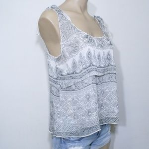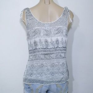 ~ Converse gray and white tank top. Layered front, tie shoulders an lined. Lining and overlay are both sheer.