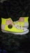 Vibrant high-top sneakers with yellow and purple panels. Features white laces and soles.