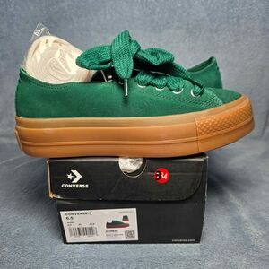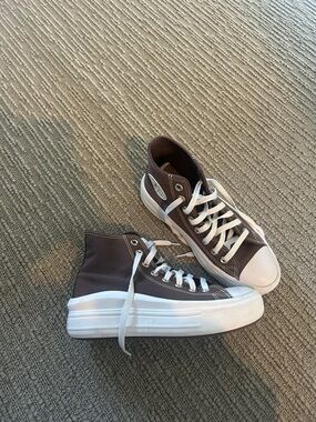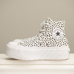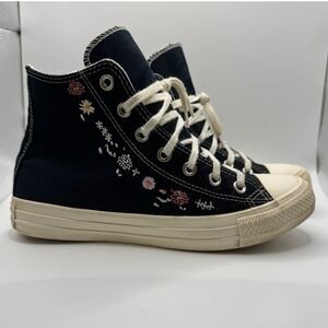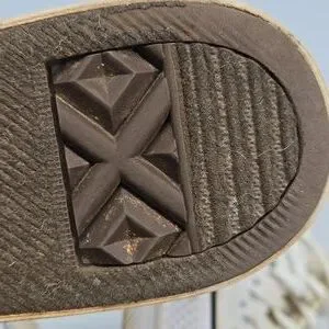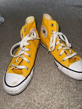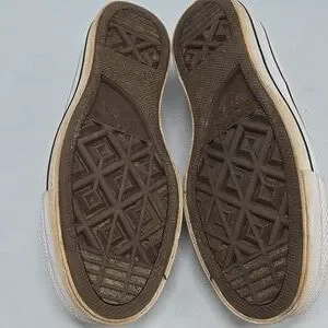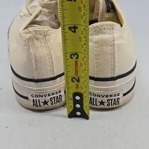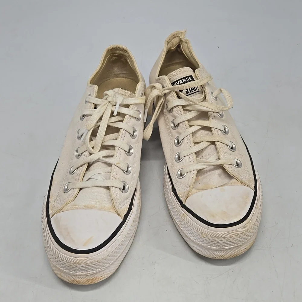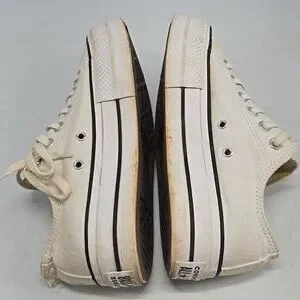 Classic off-white canvas sneakers. Lace-up style with metal eyelets. Iconic Converse logo on tongue. Great soles just dirty with heel tear see pics
