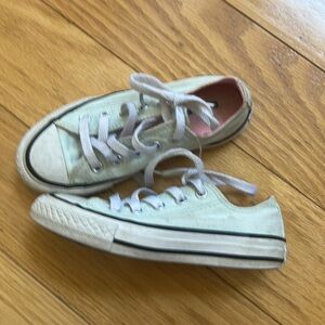 Stylish and comfortable kids' sneakers in a light mint green color. Perfect for everyday adventures. Tons of wear left in them!