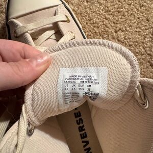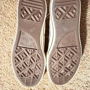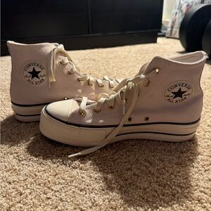Stylish Converse platform high-tops in light pink. Features classic lace-up style. Worn once, bought the wrong size so practically brand new.