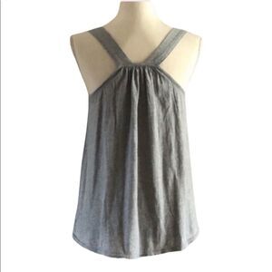 Lightweight tank top with cotton jersey back. Front is a flowy lightweight material. Back is longer than front and has a rounded hem.