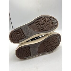 The Converse Love Fearlessly Yourself First Black White Red Heart sneakers in kids unisex size 2 are perfect for casual occasions during the summer, fall, and spring seasons. These lace-up shoes feature a round toe shape, flat heel, rubber outsole, and moderate cushioning for comfort. The black canvas upper with red heart accents and Converse logo adds a stylish touch to the classic Chuck Taylor All Star Hi model. Inspire your child to love fearlessly with these adorable sneakers that combine fashion and sentiment in a versatile and timeless design.