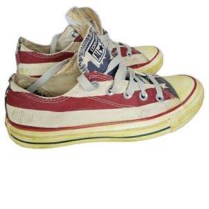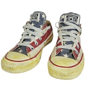 Converse All Star Patriotic flag women's sz 5.5 mens sz 4, vintage tattered distressed flag shoes. These are made to look vintage, dingy and worn. Some minor wear to the sole. Fourth of July, All American, proud to be an American