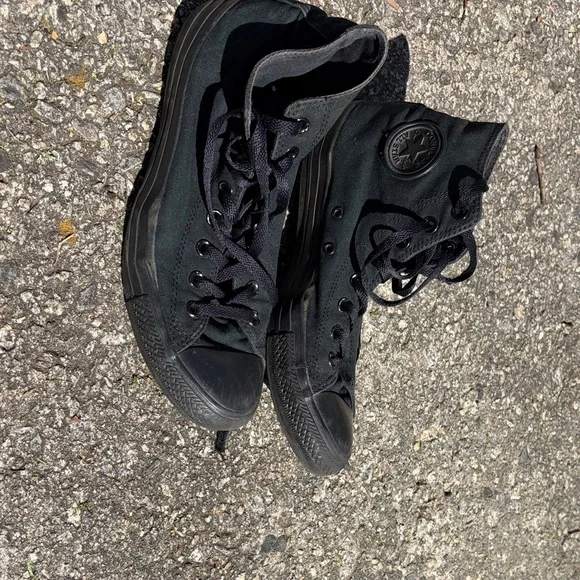 Sleek and versatile high-tops. All-black design for a bold look. Ideal for everyday wear. Well worn