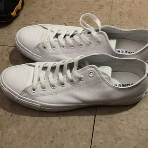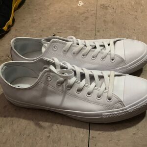 Sleek and versatile all-white Converse sneakers. Ideal for everyday wear. Classic design with a modern touch. Worn once for bridal shoot