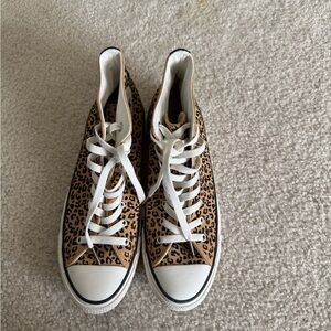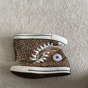 Bold animal print design. Classic high-top style. Perfect for a trendy look.
