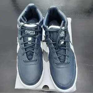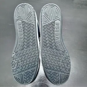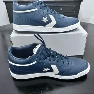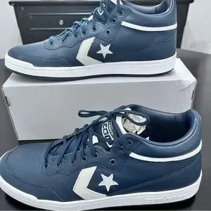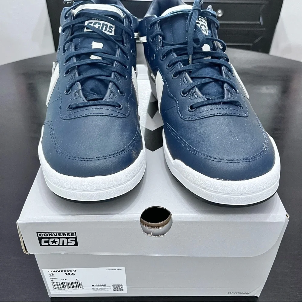 Navy blue Converse sneakers. Sleek design with white accents. Perfect for everyday style.