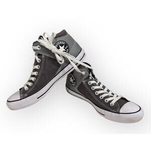 The product is a pair of Converse Men's Size 8 Chuck Taylor All Star 154841C Gray Running (unisex)Shoes Sneakers. These lace-up sneakers are perfect for casual occasions and feature a comfortable, breathable design suitable for all seasons. The rubber outsole and textile lining material ensure durability and provide added comfort for running and jogging activities. With a solid gray color and high-top shoe shaft style, these sneakers combine style with functionality, making them a versatile option for everyday wear. Made by the renowned brand Converse, these athletic shoes are a classic addition to any shoe collection. Unisex.
