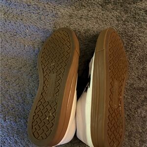 Classic Converse sneakers in white and black. Features a stylish brown sole. Ideal for casual outings.