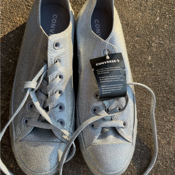 Converse silver glitter sneakers. Perfect for casual wear or to add some sparkle to your outfit. Never been worn. Women’s 10. Men’s 8.