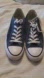 Classic Converse sneakers. Navy blue canvas with white laces. Timeless style.