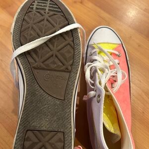Brighten your look with these Converse high-tops. Neon pink and yellow design. Perfect for a bold statement.