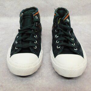 This pair of Converse Chuck Taylor All Star sneakers are perfect for any active kid! With a comfortable flat heel and lace-up closure, these mid-ankle sneakers are easy to put on and take off. The black and smoke gray color combination gives a classic look that is sure to match with any outfit. These unisex kids' shoes are suitable for all activities and are part of the Converse All Star product line. The shoe width is standard, and the UK shoe size is 1.5. The EU shoe size is 33.5, and the US shoe size is 2. The sneakers have a stylish design with the Converse brand and are perfect for kids who love comfort and style.