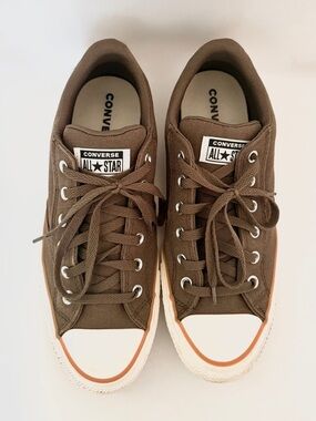 Stylish off-white high-tops. Iconic Converse design. Versatile and trendy.
