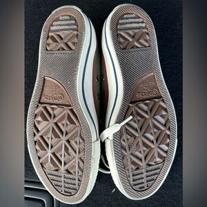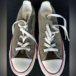 Converse Olive Green Low-Top Sneakers with White and Red Accents