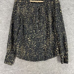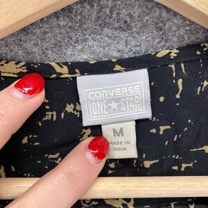 Converse One Star Blouse Women M Medium Black Geometric Button Up Long Sleeve