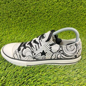Converse One Star Doodle Graffiti Boys Size 6Y White Walking Shoes Sneakers