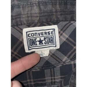 Converse One Star Flannel Shirt Men’s Size Large Plaid Gray Long Sleeve Cotton