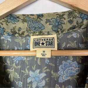 Converse One Star Gray Floral Sheer Y2K Short Sleeve Blouse M