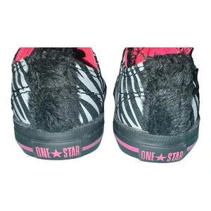 Get ready to make your little one stand out with these adorable Converse One Star Infants "Zebra" DX OX sneakers! These black tie-up sneakers feature a fun zebra-themed design that your baby is sure to love. In size 5, they are perfect for unisex toddlers who want to rock a stylish and comfortable pair of shoes.